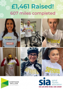And, finishing her challenge in an incredible Christmas costume, we had Lucy. Lucy works at Sheffield SCI Centre and decided to take part because she misses SIA staff being able to visit in person, and the difference that it makes to patients and staff. She ran every day in lockdown and raised over £750.